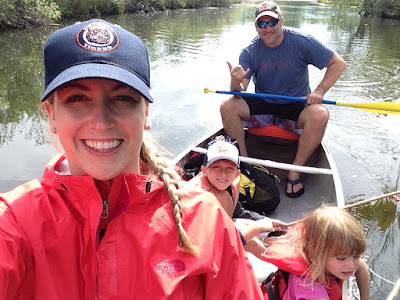 We celebrated Memorial Day by renting a canoe and paddling into Milford to watch the parade. We originally intended on taking our kayak out on the water but it sprung a leak as we were inflating it. And the hole is on the seam and you know how hard that is to repair! So we did the next best thing and rented a canoe. We packed "fishing poles", which were dowels with plastic army men tied to strings, for the kids. It gave them something to do while we paddled. We docked at Central Park and enjoyed the parade and a little play time then headed back on the water. It was a great morning and it gave us time to talk to the kids about the meaning of the day.